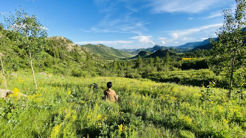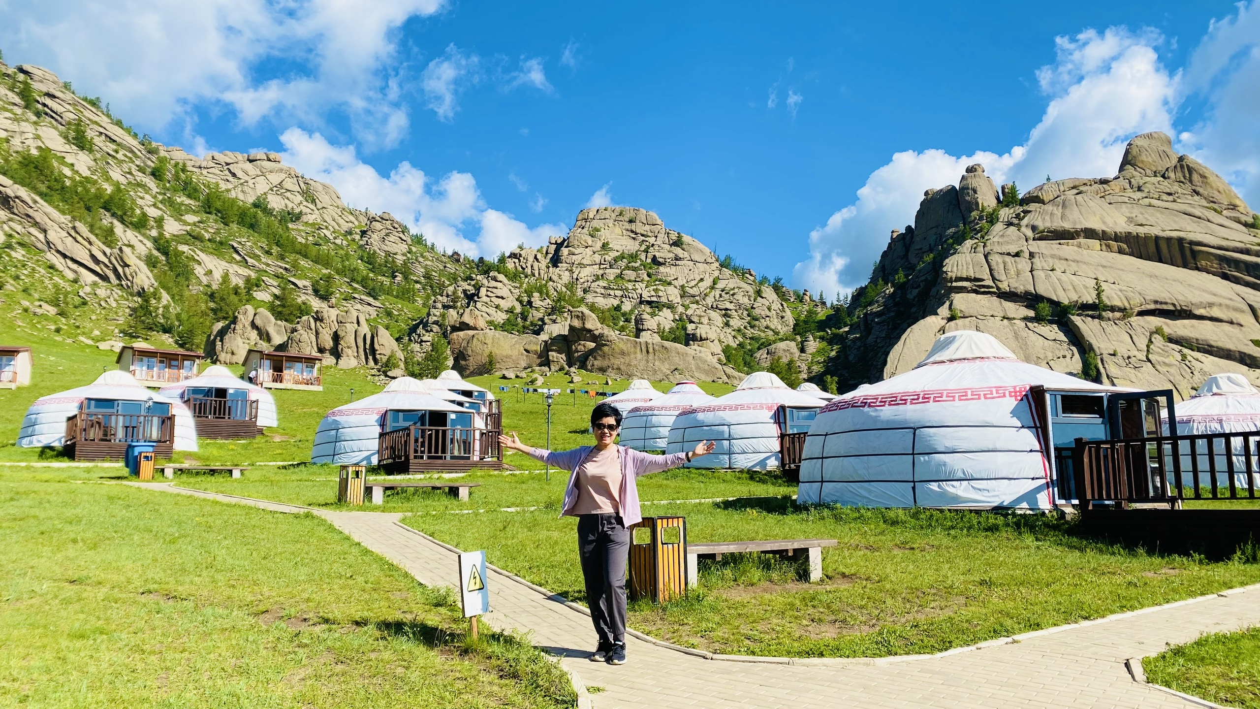 Hạ cánh xuống sân bay Chingis Khaan vào tầm trưa, chúng tôi không vào Thành phố Ulaanbaatar ngay, mà ở Tourist Ger (lều Mông Cổ, thiết kế lại cho dân du lịch) ở ngoại ô cách 40km. Khu cắm trại rất đẹp, cỏ xanh, Ger trắng, một số khác là khu nhà gỗ nhiều màu sắc, xa xa là đồi thông, xa hơn nữa là các rặng núi…. thoáng nhìn như đang ở một làng quê Thụy Sĩ nào đó.