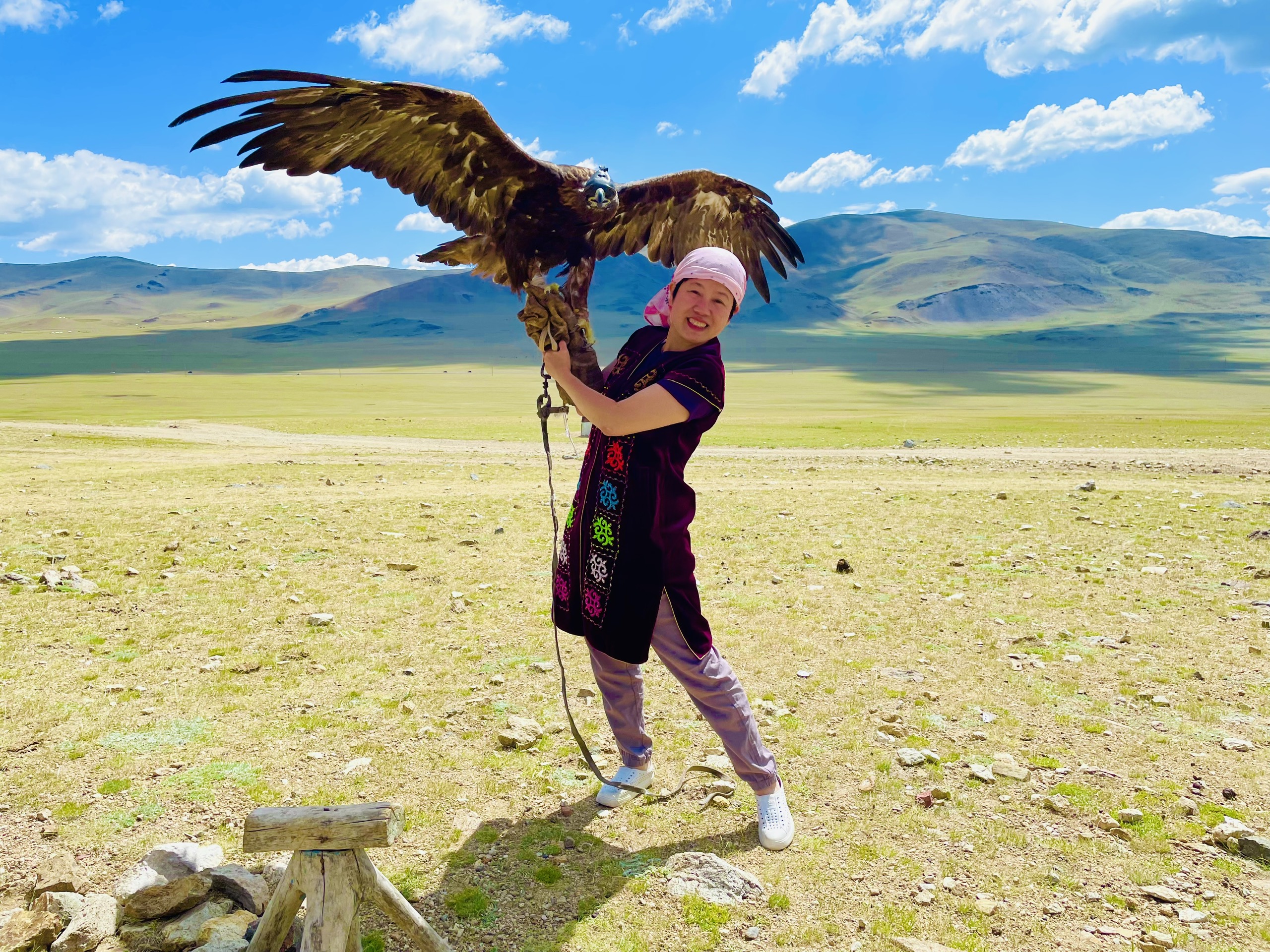 Đường từ Tolbo lake đi làng đại bàng khá xa. Gọi là làng, chứ thực ra chỉ là 1 gia đình có truyền thống nuôi đại bàng. Gần đến nơi mới biết gia đình chuyển sang địa điểm khác, và phải gọi điện để họ ra đón (dân du mục, họ di chuyển nay đây mai đó).