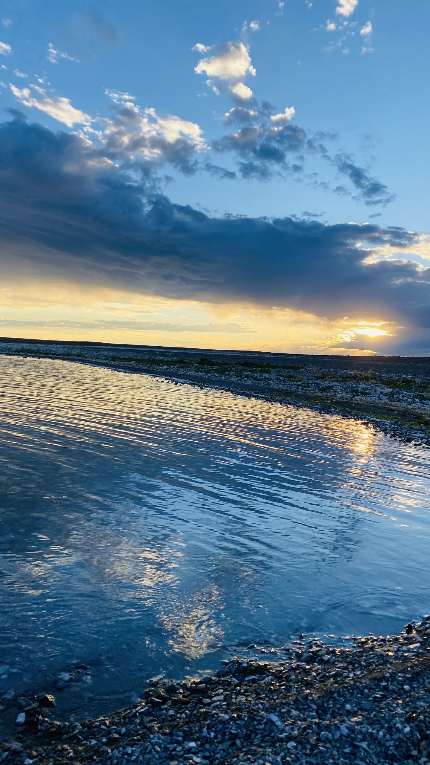 Chúng tôi bắt được ánh hoàng hôn rực rỡ qua áng mây, hắt xuống nước xanh trong vắt và không gian tĩnh lặng, có lẽ là một trong những cảnh hoàng hôn trên hồ đẹp nhất mà tôi từng thấy.